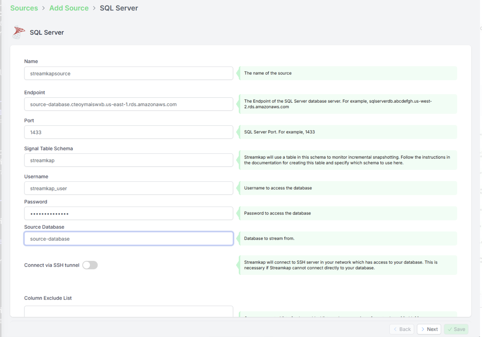 Step 1: Creating a SQL Server Source in Streamkap